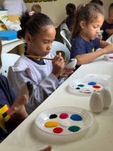 Na sequência, as crianças participaram de uma oficina criativa e cheia de significado: a confecção e pintura de ovinhos, recheados com amendoim. Cada criança produziu três unidades: duas foram levadas para casa, como lembrança desse momento especial, e uma foi destinada aos associados da Cerbranorte.