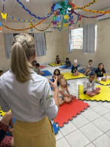A atividade teve como principal objetivo compartilhar com as crianças o verdadeiro significado da Páscoa. Em um primeiro momento, foi contada a história da Páscoa e da ressurreição de Jesus, reforçando valores como amor, esperança, solidariedade e renovação.