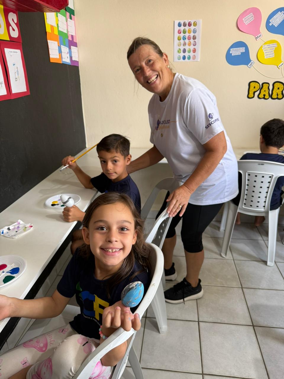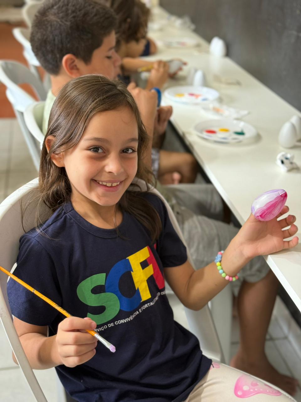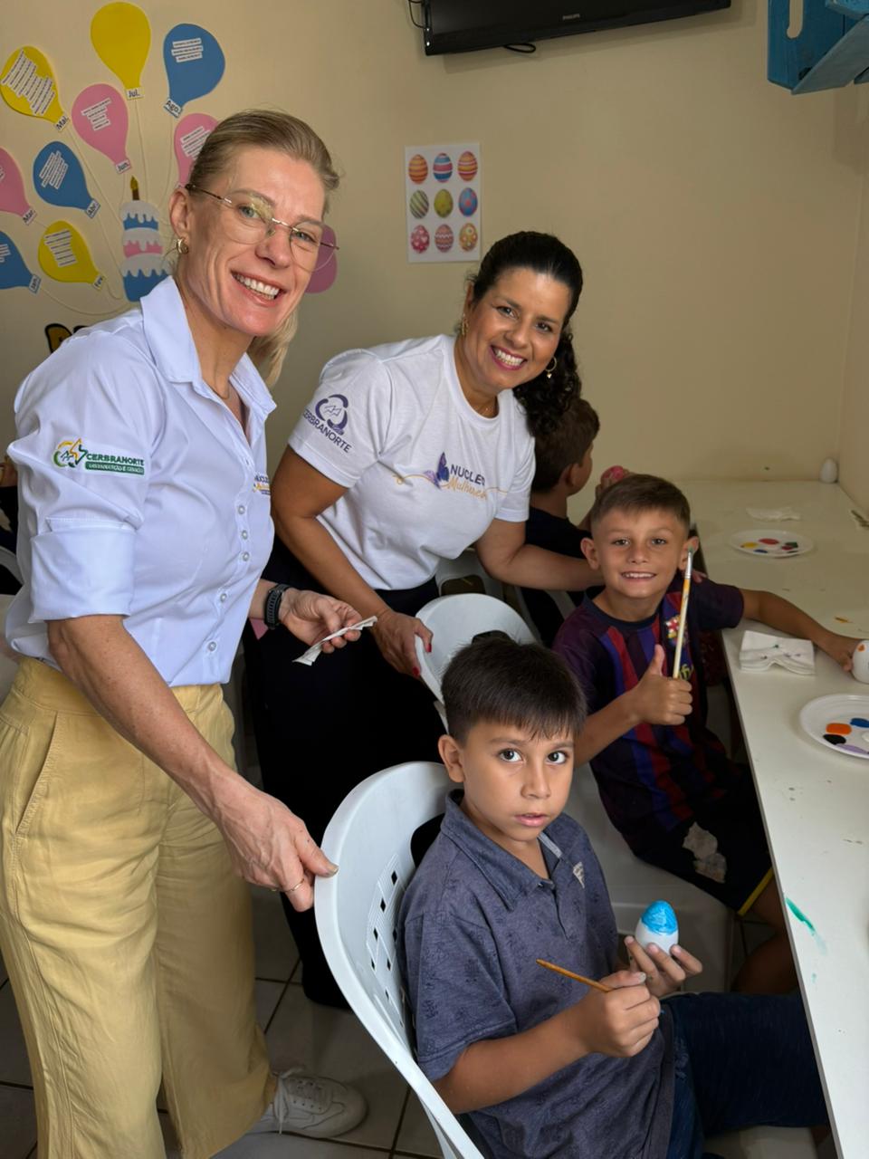 Na sequência, as crianças participaram de uma oficina criativa e cheia de significado: a confecção e pintura de ovinhos, recheados com amendoim. Cada criança produziu três unidades: duas foram levadas para casa, como lembrança desse momento especial, e uma foi destinada aos associados da Cerbranorte.