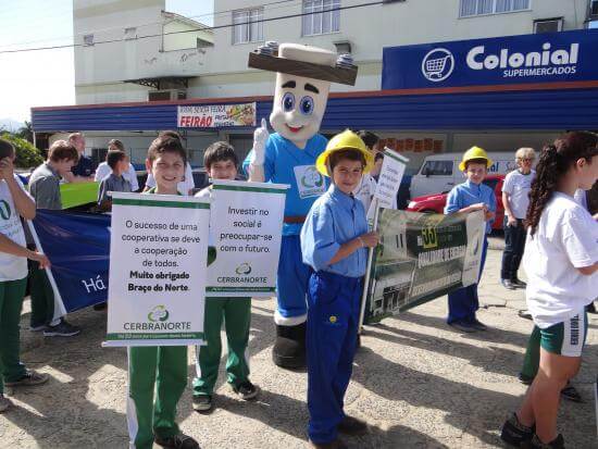 Com o tema “Braço do Norte: 60 anos de história de um povo trabalhador”, a escola municipal homenageou as empresas braçonortenses que fazem parte da história de sucesso do município, entre elas, a cooperativa. “Há 53 anos a Cerbranorte contribui com o desenvolvimento da cidade e, por isso, não poderia ficar de fora dessa homenagem”, explica uma das diretoras da instituição, Marli Sombrio