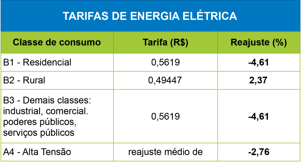 Para o consumidor residencial, o ajuste negativo representa um desconto de 4,61%.