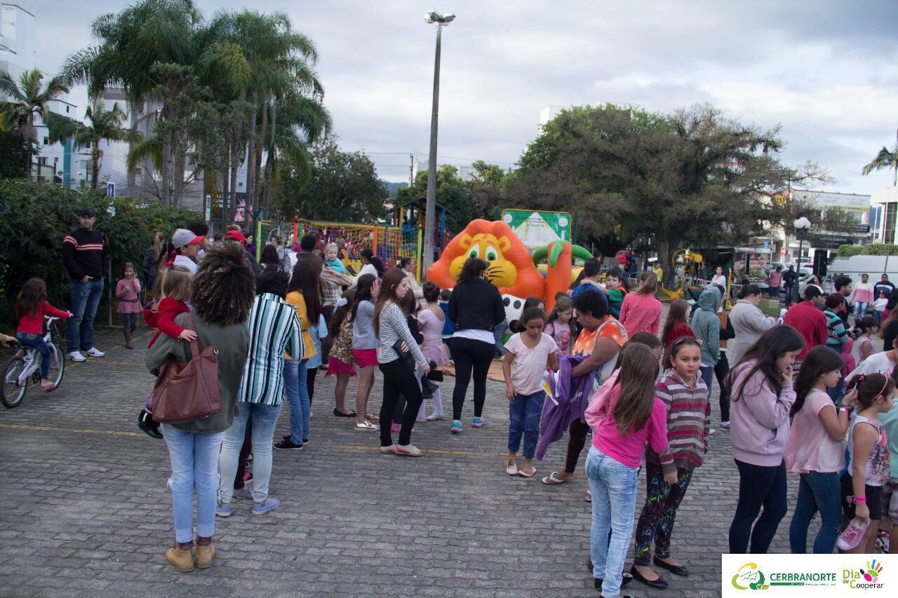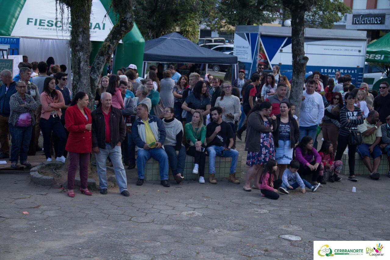 O sábado foi de cooperação na praça da igreja matriz, em Braço do Norte, onde a Cerbranorte, em parceria com empresas e instituições da região, realizou a 4ª edição do Cooperar é isso, evento em alusão ao Dia do Cooperativismo, que neste ano está inscrito no Dia C.