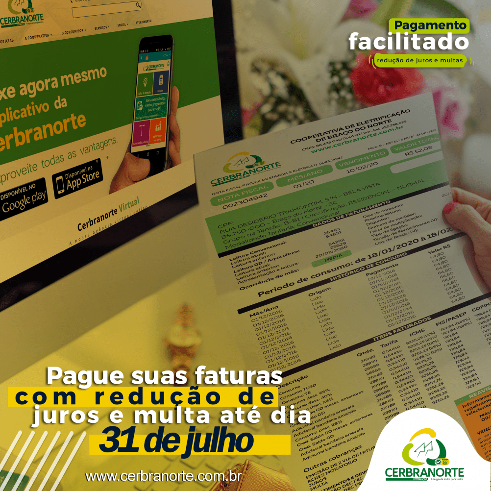 Cientes da situação a qual estamos enfrentando meio a uma pandemia, a Cerbranorte está oferecendo condições facilitadas para pagamentos das faturas com redução de juros e multas, além de parcelamentos diferenciados de acordo com as necessidades dos consumidores. Mas, lembramos que estas condições vão somente até o dia 31 de julho.