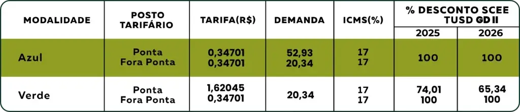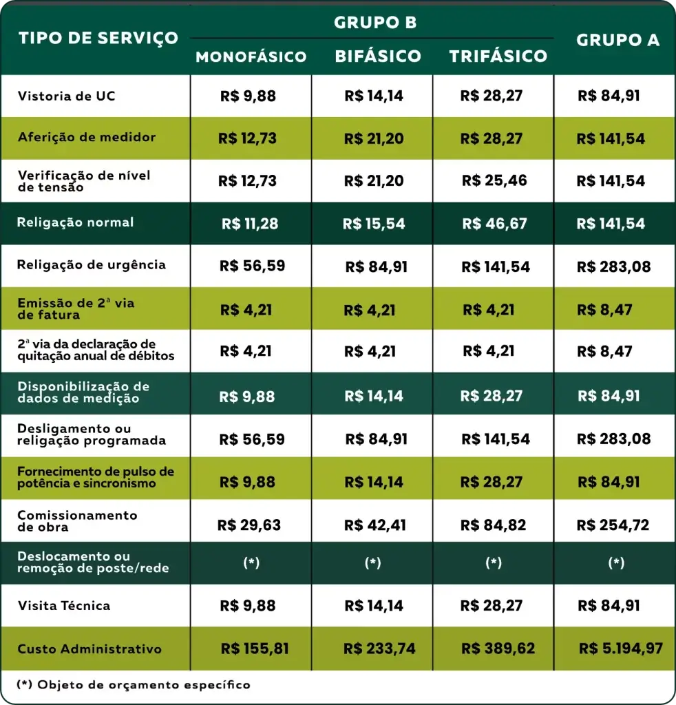 Como agente do setor elétrico, possui tarifas de suprimento (compra) e fornecimento (venda) homologadas pela ANEEL, com reajuste anual até 30 de setembro.